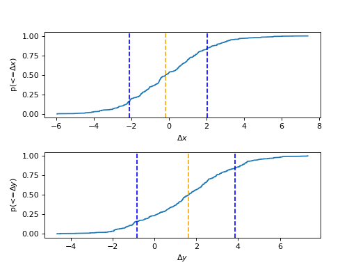 >>> cdf.prepare(pvals[2, :] - truth.ypos.val, r'$\Delta y$')