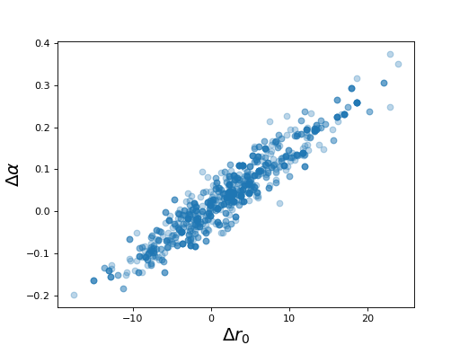 >>> _ = plt.xlabel(r'$\Delta r_0$', size=18)