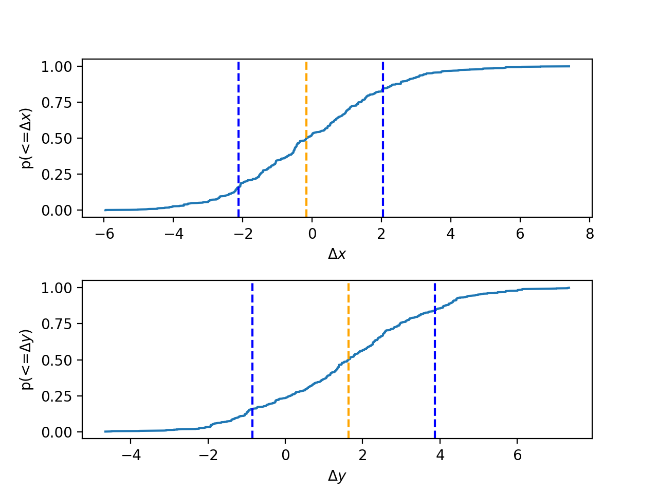 >>> cdf.prepare(pvals[1, :] - truth.xpos.val, r'$\Delta x$')